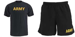 Army PT Uniform Bundle - T-Shirt and Shorts - Black and Yellow - Current Issue